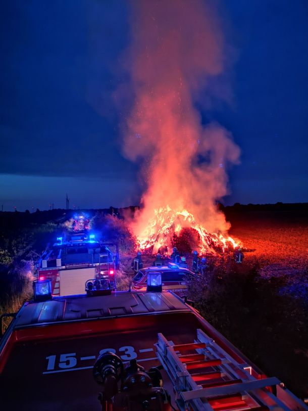 von 400 Quadratmetern Stroh auf einem Stoppelacker in der Rockenmühler Straße b…
