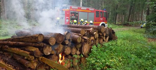 Uelzen. Feueralarm im Stadtwald: Heute um 11.35 Uhr wurde die Feuerwehr Uelzen mit dem Einsatzstichwort "Waldbrand 1" in den Stadtwald alarmiert. Unweit des Wildtiergeheges wurde eine Rauchentwicklung aus einem Stapel mit Holzstämmen gemeldet. Tatsächlich brannten beim Eintreffen der ersten Einsatzkräfte von Feuerwehr und Polizei mehrere Holzstämme in dem fünf Meter langen und etwa zwei Meter breiten Stapel. Umgehend nahm ein Trupp ein Einsatz mit C-Rohr vor und bekämpfte den Brand mit einem Wasser-Schaummittel-Gemisch. Durch die Schaummittelzugabe in das Löschwasser wird die Oberflächenspann…