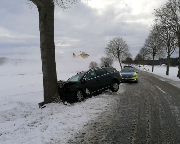 Edendorf. Schwerere Verletzungen erlitt die 35 Jahre alte Fahrerin eines VW Passat in den Mittagsstunden des Mittwoch auf der Kreisstraße 1 - Edendorfer Straße. Nach derzeitigen Ermittlungen war die Frau gegen 13.20 Uhr mit ihrem Auto von Wichmannsburg in Fahrtrichtung Edendorf unterwegs, als sie nach eigenen Eingaben einem entgegenkommenden Fahrzeug ausweichen musste. Der Passat kam nach rechts von der Fahrbahn ab und prallte gegen einen Baum. Aufgrund der schweren Verletzungen der 35-Jährigen war eine abschließende Befragung nicht möglich. Es entstand ein Sachschaden von gut 10.500 Euro. De…