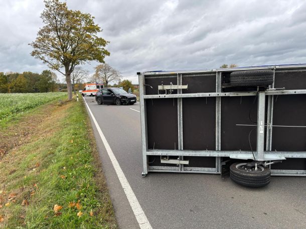 Stöcken. Sturm Joshua hat für einen erheblichen Sachschaden bei Stöcken gesorgt: Eine starke Windböe auf der L256 zwischen Stöcken und Oetzen beschäftigte heute Nachmittag die Feuerwehr Oetzen. Gegen 14 Uhr fuhr ein E-Auto mit Planenanhänger zwischen Stöcken und Oetzen und wurde von einer Windböe erfasst. Das E-Auto wurde stark beschädigt, der Anhänger lag bei Eintreffen der Einsatzkräfte auf der Seite.