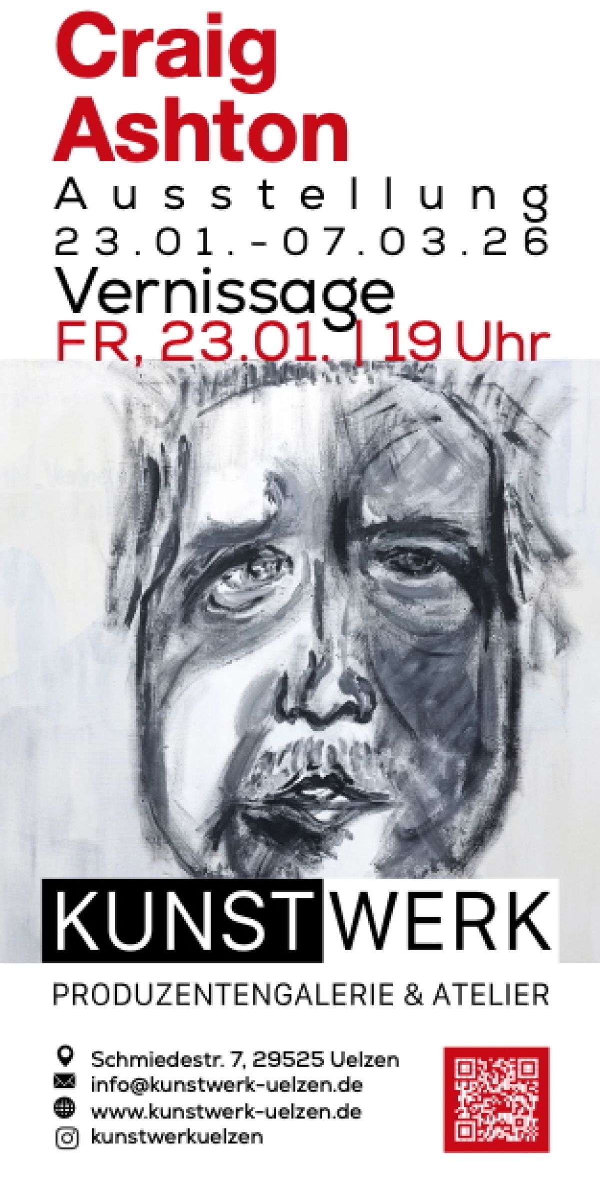 Am Freitag, 23. Januar, 19 Uhr, findet die Vernissage mit Werken des Künstlers Craig Ashton im Atelier Kunstwerk in der Schmiedestraße 7 in Uelzen statt: