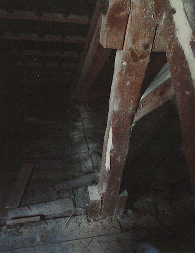 Laut Expertengutachten besteht ein Teil der Dachkonstruktion aus massiver Eiche und ist unversehrt. Der Teil, der einst aus Nadelholz erstellt wurde, hat aber durch Schädlingsbefall massivste Schäden erlitten.