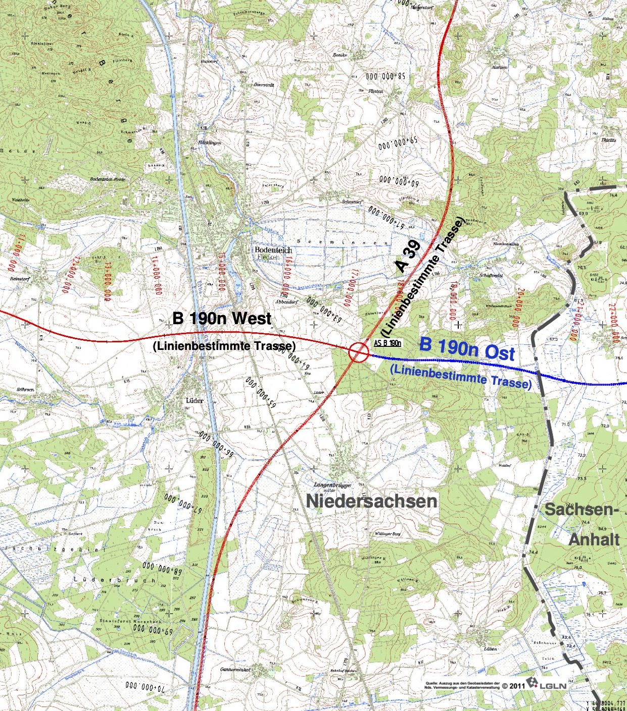 Die B 190n zwischen der B 4 und A 39 ist Teil des Bundesverkehrswegeplans und Bestandteil eines straßenbaulichen Gesamtkonzepts bestehend aus der A 14 Magdeburg-Schwerin, der A 39 Lüneburg-Wolfsburg sowie der Verbindung beider Autobahnen bis an die B 4/B 191. Auf niedersächsischem Gebiet ist die B 190n in die Abschnitte West und Ost unterteilt. Der westliche Teil von Breitenhees (B 4) bis Bad Bodenteich (A 39) umfasst 16,3 Kilometer, der östliche Teil von Bad Bodenteich (A 39) bis zur Landesgrenze Niedersachsen/Sachsen-Anhalt 3,2 Kilometer.