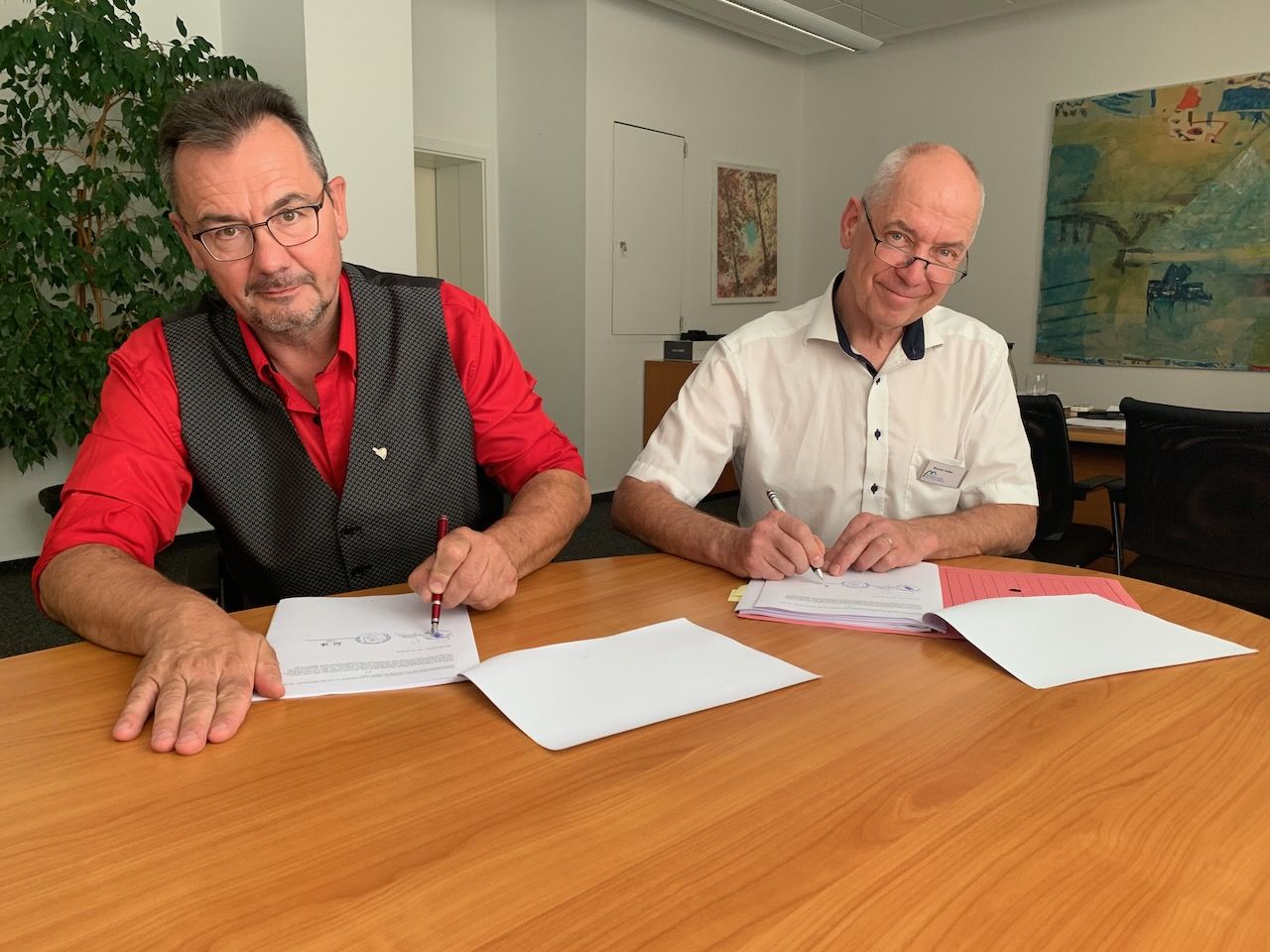 Mit dem Grünen Licht für den Umzug des Fachbereichs II (Finanzen) der Samtgemeindeverwaltung aus Ebstorf in Container am Bad Bevenser Rathaus Anfang diesen Jahres war der Weg frei für die heutige Vertragsunterzeichnung. Ganz nebenbei sind die Arbeitsbedingungen in den klimatisierten und gut isolierten Containern deutlich besser als in den kleinen alten Büros im Klosterflecken. Und: „Die Zusammenarbeit der Teams in Arbeitsgruppen ist jetzt deutlich einfacher“, erklärt Verwaltungschef Feller.