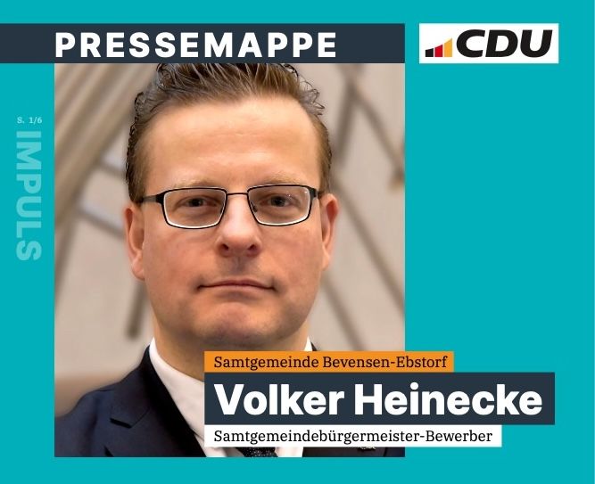 Wie berichtet, wird sich Volker Heinecke am morgigen Donnerstag, 25. September, 19.30 Uhr, im Gasthaus Lüllau, Lüneburger Straße 15, Ebstorf, der Öffentlichkeit als potenzieller Kandidat für das Amt des Samtgemeindebürgermeisters vorstellen, so die CDU Ebstorf.