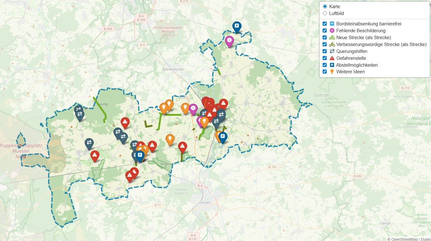 Bevensen/Ebstorf. Die Ideenkarte zum Radverkehrskonzept der Samtgemeinde Bevensen-Ebstorf ist schon mit einigen Ideen und Vorschlägen gespickt. Gern können aber noch weitere kreative Empfehlungen eingetragen werden. Noch bis Sonnabend, 28. Februar ist dafür Zeit. Je mehr Blickwinkel berücksichtigt werden, umso mehr Ideen können am Ende in das Konzept einfließen. Wer sich lieber persönlich und nicht digital beteiligen möchte, hat bei vier Vor-Ort-Veranstaltungen, die Gelegenheit:
