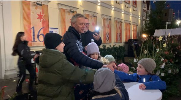 Uelzen. 3, 2, 1… Weihnachtsbeleuchtung! Mit einem kräftigen Druck auf den roten Knopf hat Uelzens Bürgermeister Jürgen Markwardt soeben den Weihnachtszauber eröffnet - begleitet von einer munteren Kinderschar. Auch in diesem Jahr hatten sich wieder viele Zuschauer auf den Weg zum Alten Rathaus gemacht, um der Eröffnung beizuwohnen. Markwardt dankte ausdrücklich den Sponsoren, der KTS und dem großen Organisationsteam, ohne die der Weihnachtszauber nicht möglich wäre. Viel Zeit zum Verweilen blieb dem Stadtoberhaupt nicht - als nächstes war die mycity-Eisbahn auf dem Herz…