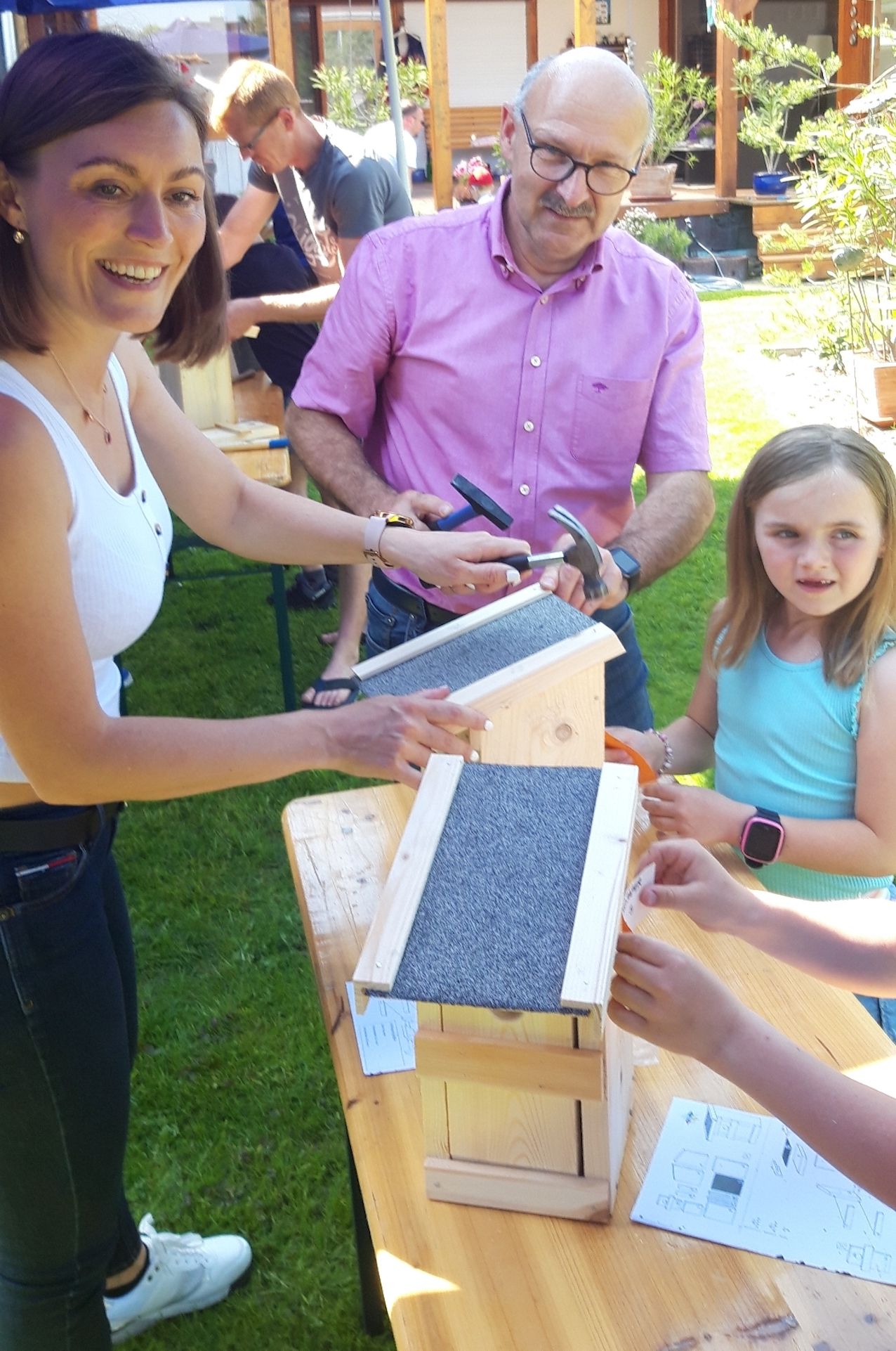 Günther bedankte sich bei den jungen Häuslebauern für die tolle Arbeit und freute sich sehr, dass die Kinder einen wunderbaren Beitrag zum Schutz der Natur und insbesondere der Vögel beigetragen haben. Zum Dank durfte jedes Kind das selbst gebaute Vogelhaus mitnehmen, um es eigenständig an seinem Wunschort anbauen zu können. Ein toller Nachmittag ging zu Ende mit sichtlich stolzen Kindern und frohen Eltern.