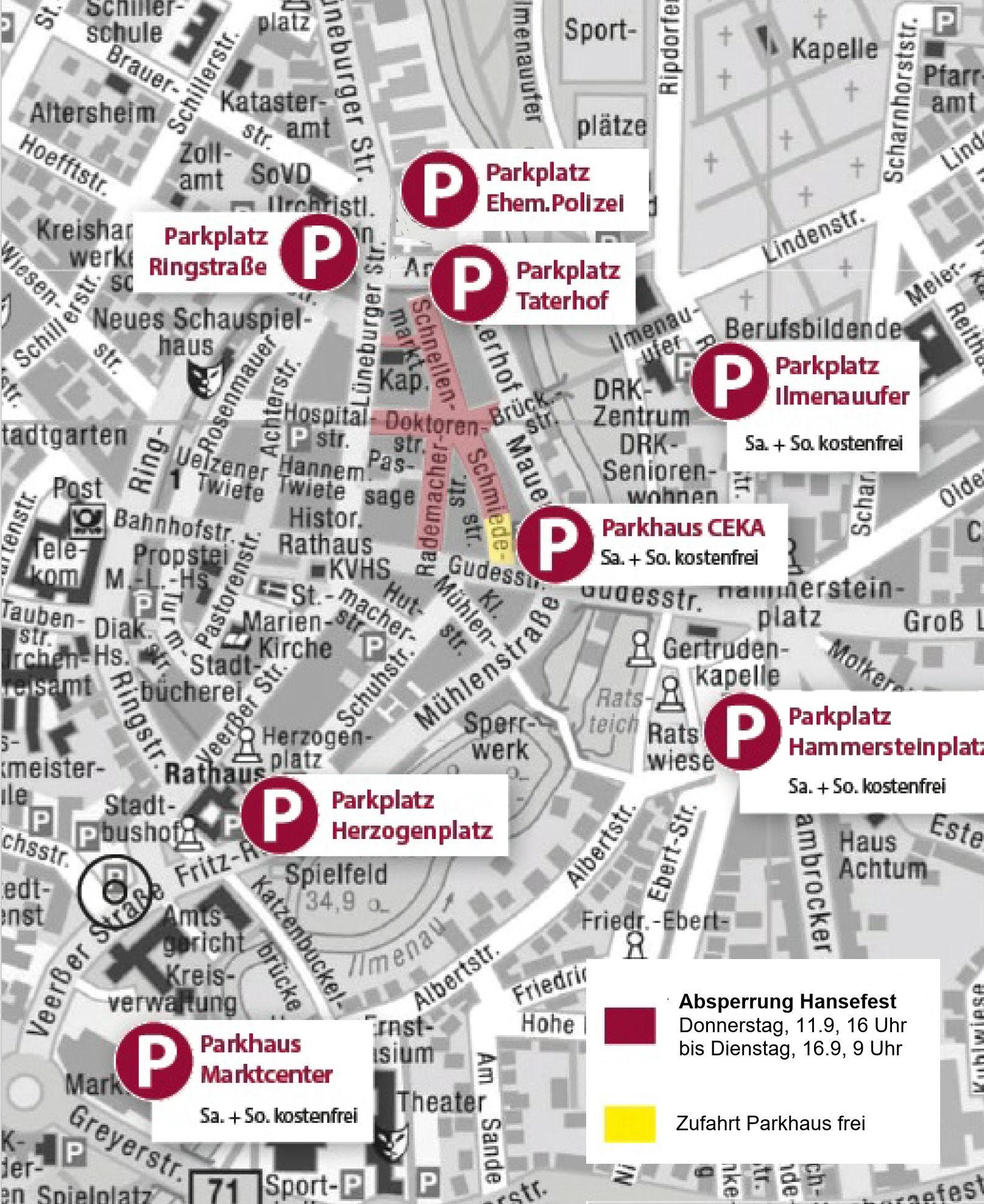 Plan (Hansestadt Uelzen): Sperrungen und Parkmöglichkeiten