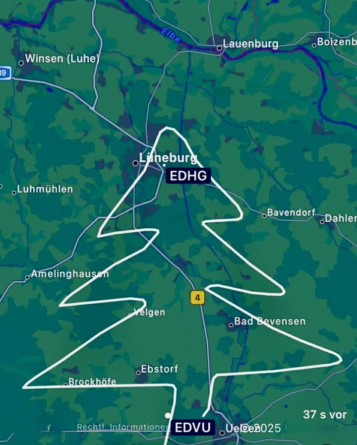 Die Flugroute in Form eines Weihnachtsbaums war die Idee zweier Zwei Mitglieder, die sich das ungewöhnliche Flugbild ausgedacht haben. Auch auf der Flug-Tracking-App Flightradar24 war die Route zu sehen.