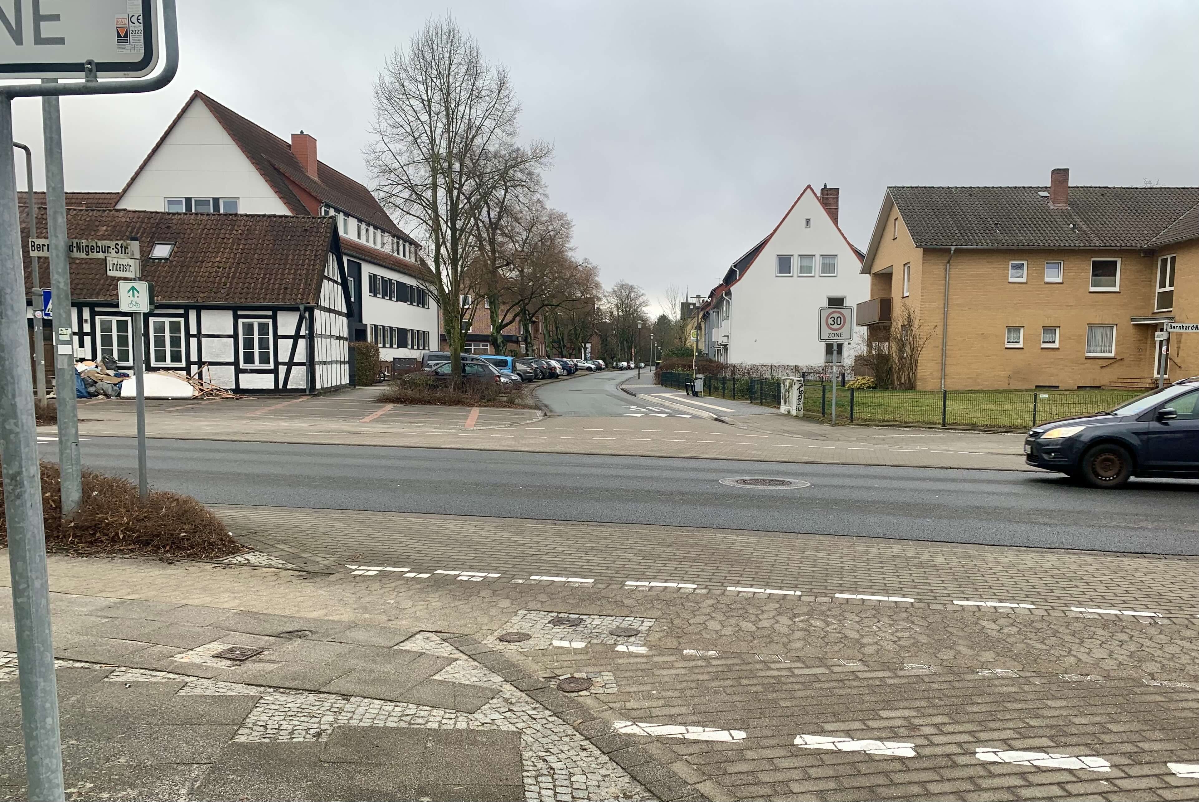 Darüber hinaus sieht die Planung bauliche Anpassungen an der Bernhard-Nigebur-Straße vor. Vorgesehen ist unter anderem eine leichte Verschwenkung der Fahrbahn im Bereich des Knotenpunkts. Die Straße verläuft dort künftig nicht mehr geradlinig. Ziel ist, die Streckencharakteristik zu verändern und den optischen Eindruck einer durchgängigen Vorfahrtstraße zu vermeiden. Wer auf eine leichte Kurve zufährt, reduziert in der Regel die Geschwindigkeit und nähert sich einer Kreuzung aufmerksamer. So wird die neue Vorfahrtssituation deutlicher wahrgenommen.