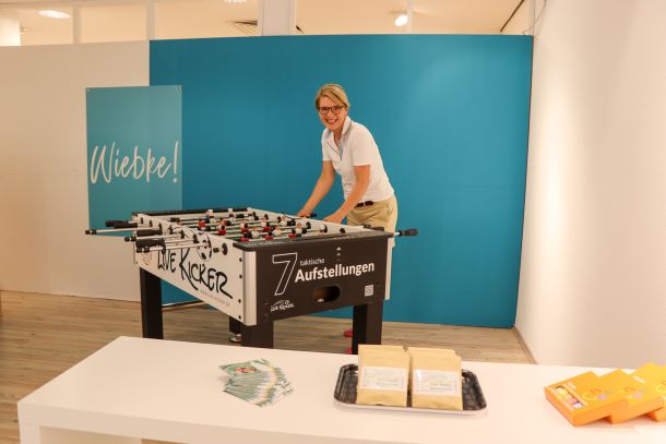 Uelzen. Ein Leerstand weniger in den Marktstraßen – zumindest in den kommenden Monaten: Am morgigen Sonnabend, 19. Juni, 10 Uhr, eröffnet Dr. Wiebke Köpp in der Lüneburger Straße 7 mitten in der Innenstadt ihre „WählBar“. Die CDU-Bürgermeisterkandidatin hat mit ihrem Team hunderte von Stunden Arbeit investiert, um ein Wahlkampf-Hauptquartier der besonderen Art auf die Beine zu stellen – es gibt außer einem einem Lounge-Bereich auch Info-Hotspots, Tresen, Kinderspielecke und einen großen Fußballkicker: „Hier soll es nicht nur um dröge politische Themen gehen. Politik ist gut, aber es muss auch…