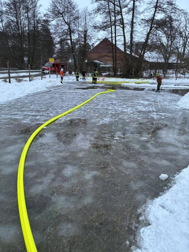 Einbrechen unmöglich: Feuerwehr Suderburg flutet Eiswiese neu - Achtung: Betreten am heutigen Freitag noch nicht möglich!
