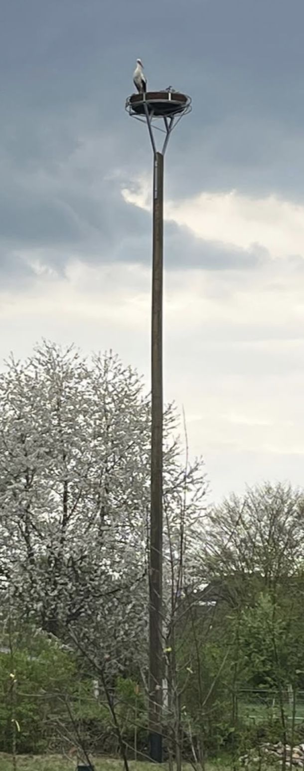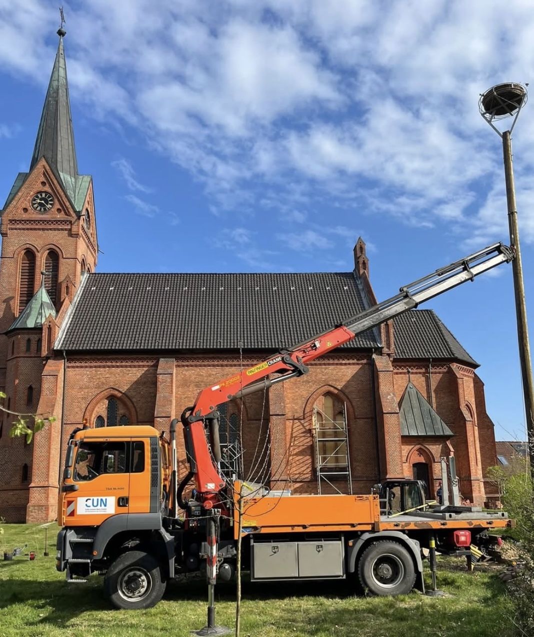 Lehmke. Der NABU Uelzen hat mit Partnern einen neuen Storchenhorst im ehemaligen Pfarrgarten neben der altehrwürdigen Kirche errichtet.