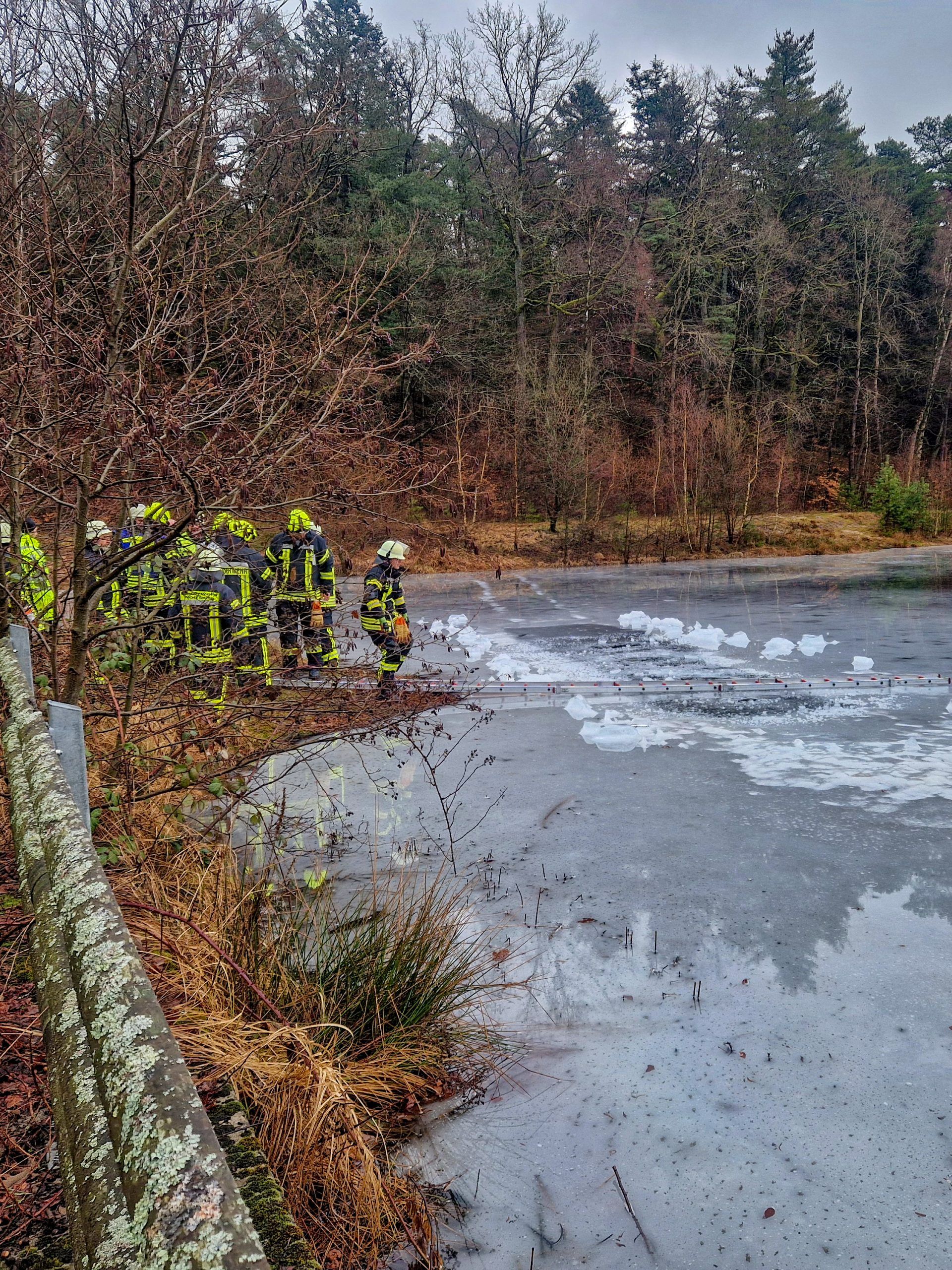 Lopau. Am Montagmorgen wurden mehrere Feuerwehren sowie Fachgruppen nach Lopau alarmiert, darunter eine ganze Reihe Einsatzkräfte aus dem Landkreis Uelzen. Auf der Eisfläche eines Sees waren deutliche Fahrspuren sowie eine Fläche zu erkennen, die auf eine mögliche Einbruchstelle im Eis hindeutete. Aufgrund dieser Lage musste von einem möglichen Fahrzeug im Wasser ausgegangen werden.