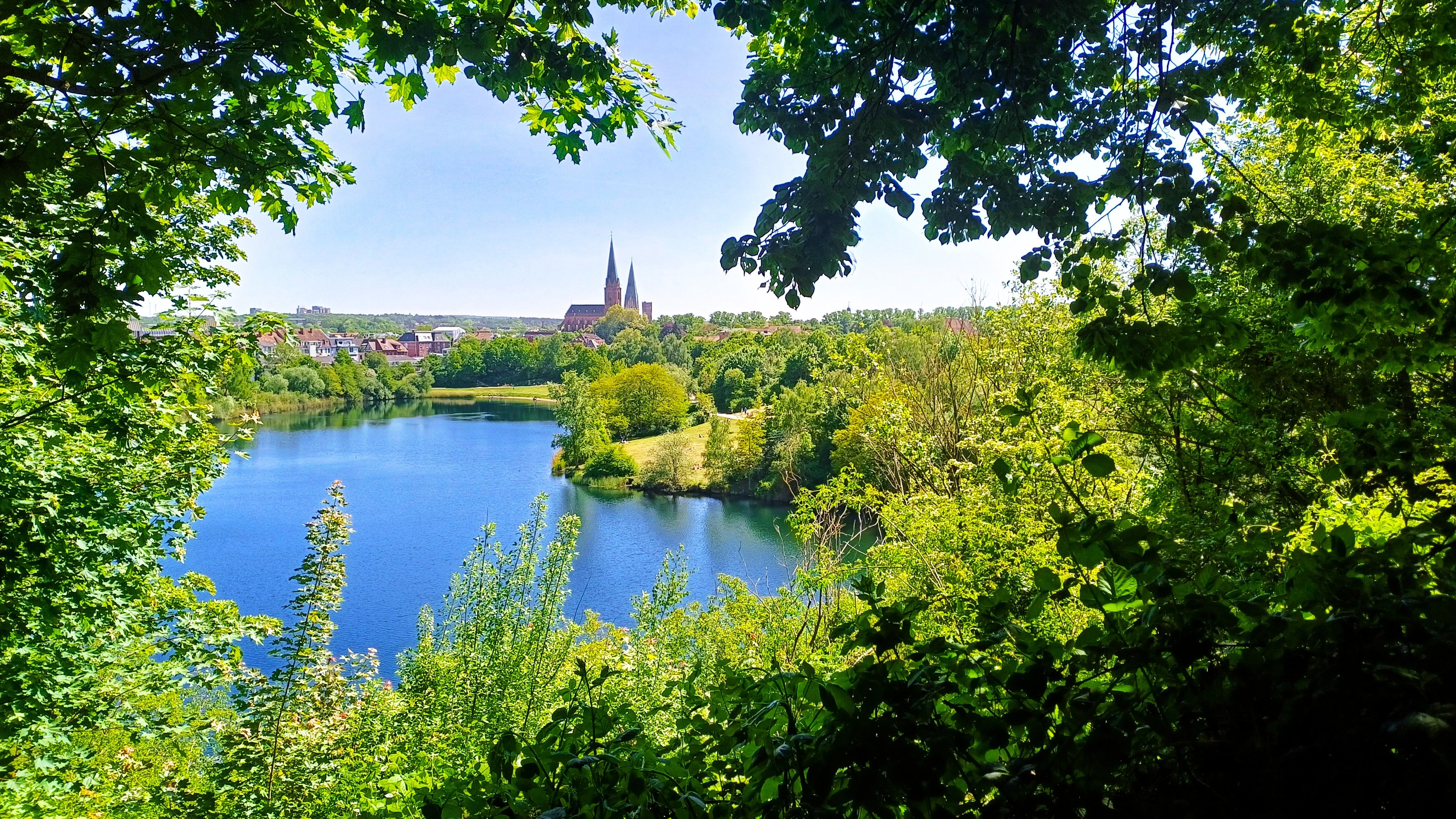 Lüneburg. Nicht ganz - aber direkt in Lüneburg könnt ihr einen wunderschönen Panormanablick über den Kreidebergsee auf einen Teil der Stadt genießen.