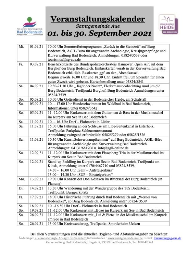 Veranstaltungskalender der Samtgemeinde Aue für September
