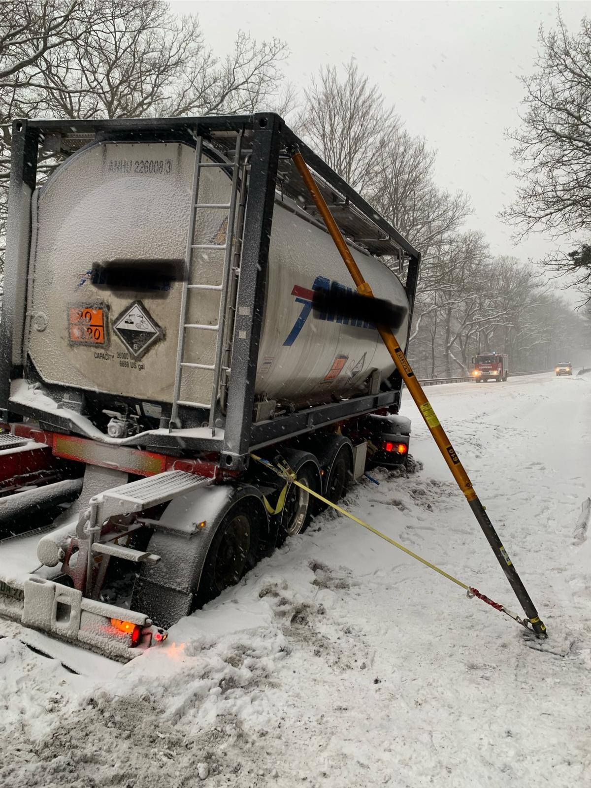 Viele Unfälle auf winterglatten Straßen - Zum Glück keine Verletzten - B4: Mit Schwefelsäure beladener Gefahrtgut-LKW droht umzukippen