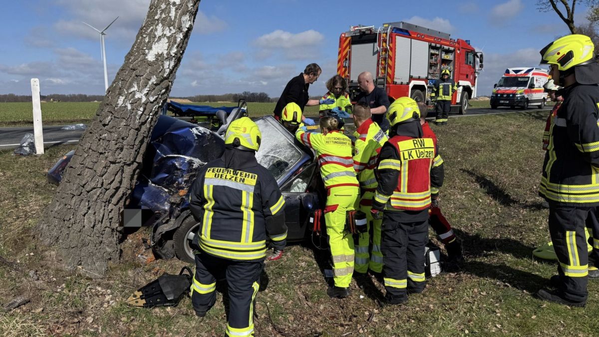 Der 73 Jahre alte Fahrer eines Mazda Cabrio war gestern gegen 14.20 Uhr möglicherweise aufgrund körperlicher Mängel zwischen Groß Liedern und Hanstedt II mit seinem Pkw nach links von der Fahrbahn abgekommen und mit einem Baum kollidiert. Einsatzkräfte der Feuerwehr mussten den Mann aus dem Fahrzeug bergen. Er wurde mit schwersten Verletzungen ins Klinikum gebracht.
