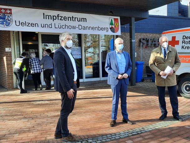 Uelzen. Das Impfzentrum Uelzen ist erfolgreich in den Echtbetrieb gestartet. Anlässlich der heutigen erstmaligen Öffnung der für die beiden Landkreise Uelzen und Lüchow-Dannenberg zuständigen Einrichtung nutzte Uelzens Landrat Dr. Heiko Blume die Gelegenheit, sich vor Ort einen persönlichen Eindruck vom Impfgeschehen und den entsprechenden Abläufen zu machen. „Ich freue mich, dass nun auch unser Impfzentrum an den Start gegangen ist, um zunächst die Über-80-Jährigen aus den beiden Landkreisen gegen das Coronavirus zu impfen“, zeigte sich Landrat Dr. Blume erleichtert. In der Anfangsphase er...