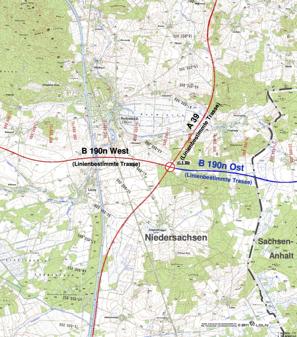 Die B190n zwischen der B 4 und A 39 ist Teil des Bundesverkehrswegeplans. Die Linienbestimmung erfolgte 2008. Zwischen 2009 und 2014 wurde durch die NLStBV die Vorplanung erarbeitet und die linienbestimmte Trasse weiterentwickelt. So wurden bspw. Lösungen zur Anbindung der B 190n an den Abschnitt 5 der A 39 erarbeitet, zur Querung des Elbe-Seiten-Kanals und der Bahnstrecke Bad Bodenteich – Wittingen. Auch wurde untersucht, wie die Knotenpunkte für die Anbindung an das Bestandsstraßennetz ausgebildet und Querungsmöglichkeiten für Wildtiere geschaffen werden können.