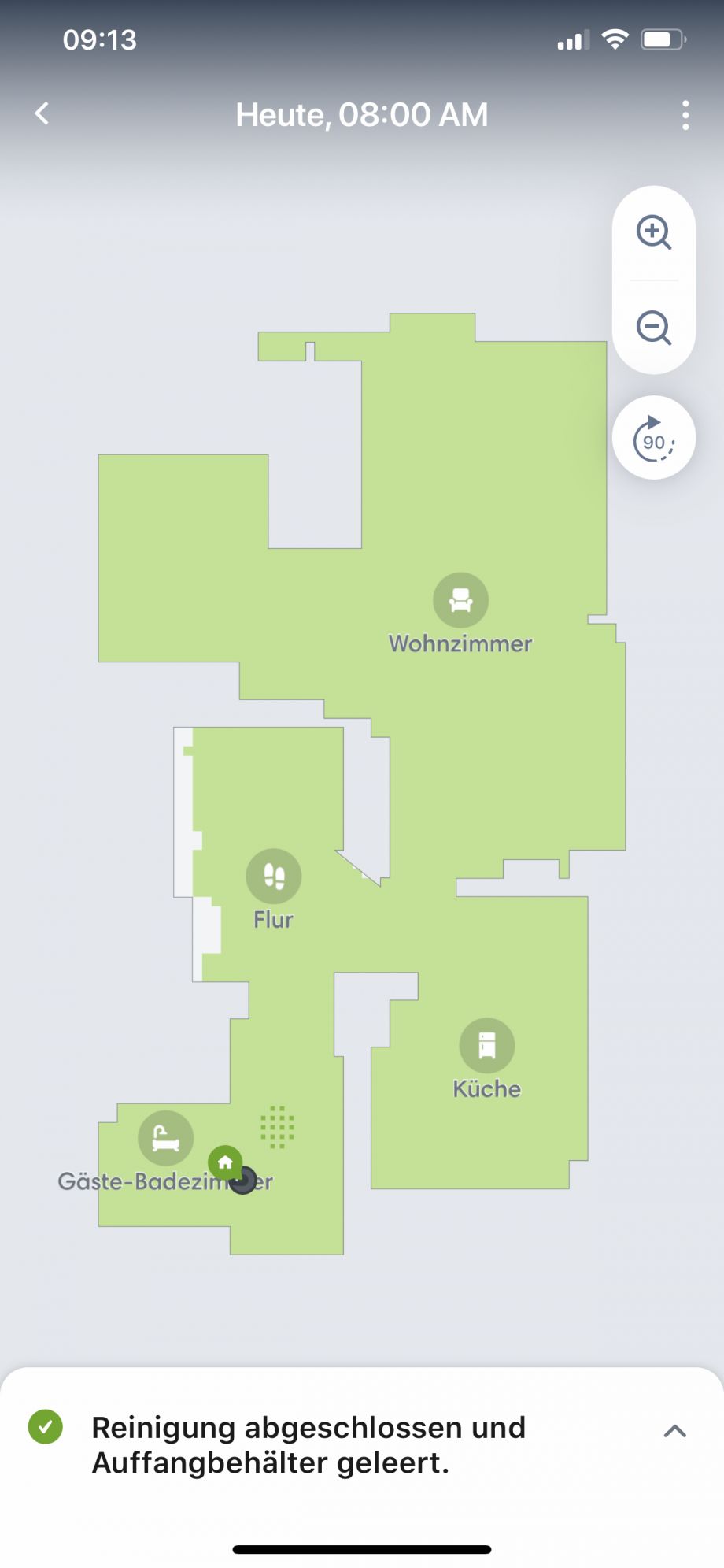 Die kostenlose App ist ein kleiner Geniestreich. Sie ermöglicht es unter anderem, Wochenpläne zu erstellen oder Automatisierungen in Gang zu setzen. So kann der i7 loslegen, wenn alle Bewohner aus dem Haus sind. Es ist auch möglich, auf der Karte die einzelnen Räume einzuteilen und zu benennen. Damit lässt sich dann die Reihenfolge der zu saugenden Räume festlegen. „Saugi“ kann damit aber auch kurzerhand ins Esszimmer beordert werden, um die Frühstückskrümel zu beseitigen. Klasse: Der Saugroboter kann mehrere Karten für unterschiedliche Etagen anlegen.