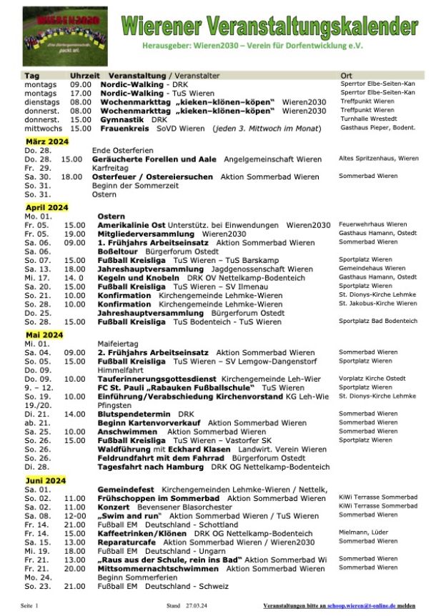Wieren: Aktuelle Fassung des Veranstaltungskalenders 2024