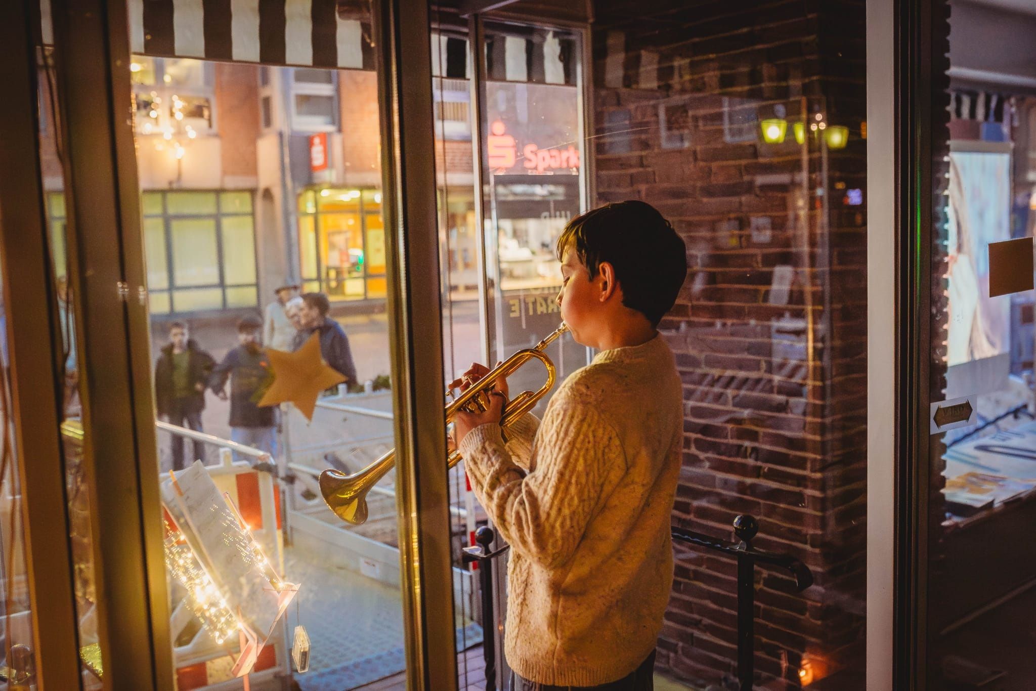 Foto (Paulina Klopot): An der Trompete Leo Klopot bei der Eröffnung der Wunschstern-Aktion am 1. Dezember