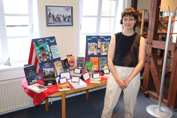 Bad Bevensen. Das frisch mit dem Theaterpreis des Bundes ausgezeichnete Jahrmarkttheater Bostelwiebeck hat sich mit der Bibliothek im Griepe-Haus einen Kooperationspartner ausgewählt, der die Veranstaltungsreihe „Zeltplatz der Zivilisation“ thematisch begleitet. Im ersten Stock des Griepe-Hauses finden die Gäste einen Büchertisch, den Bibliotheks-Mitarbeiterin Beate Hilgers zusammengestellt hat. Die unterschiedlichen Bücher ergänzen die Inhalte der Workshops, Theaterstücke und Vorträge der Veranstaltungsreihe „Zeltplatz der Zivilisation“ und setzen sie gedanklich fort. Ein Beispiel ist das Bu…