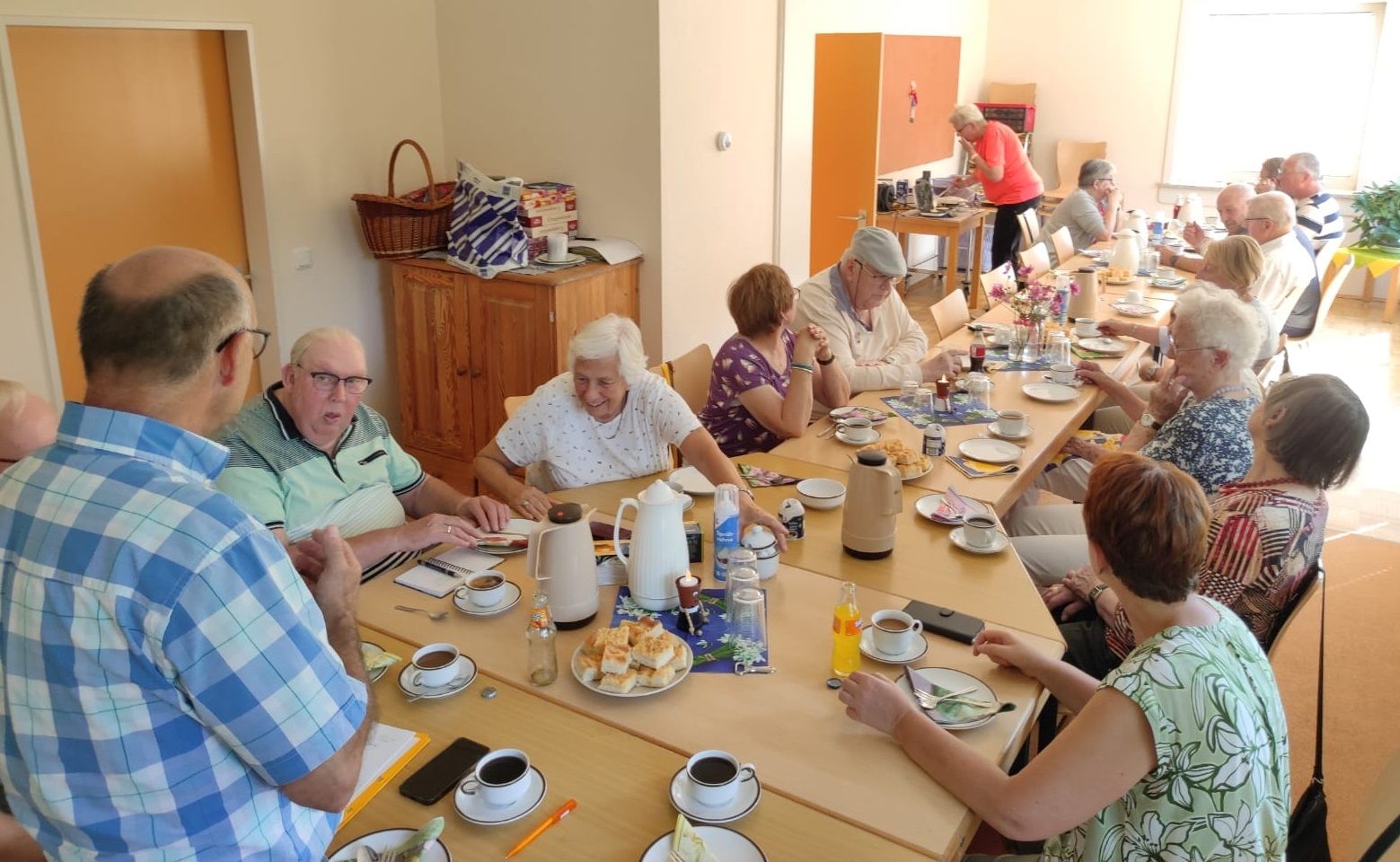 Nach der Kaffeetafel folgte in lustiger Runde das bei allen beliebte Bingo-Spiel. Dazu erhielten die Sieger kleine Preise. Auch eine Geburtstagsjubilarin war gekommen, um beim Sommerfest dabei zu sein. Margret Bresch erhielt nachträglich zu Ihrem 90. Geburtstag ein kleines Präsent sowie einen Blumenstrauß vom ersten Vorsitzenden Körding. Im Anschluss wurde das Gemeindehaus besichtigt und Günther, federführend in der Sache DGH, beantwortete geduldig die Fragen der Clubmitglieder. Zum Abschluss des gelungenen Sommerfestes wurden Spezialitäten vom Grill serviert, und der Nachmittag klang langsam bei kühlen Getränken aus.