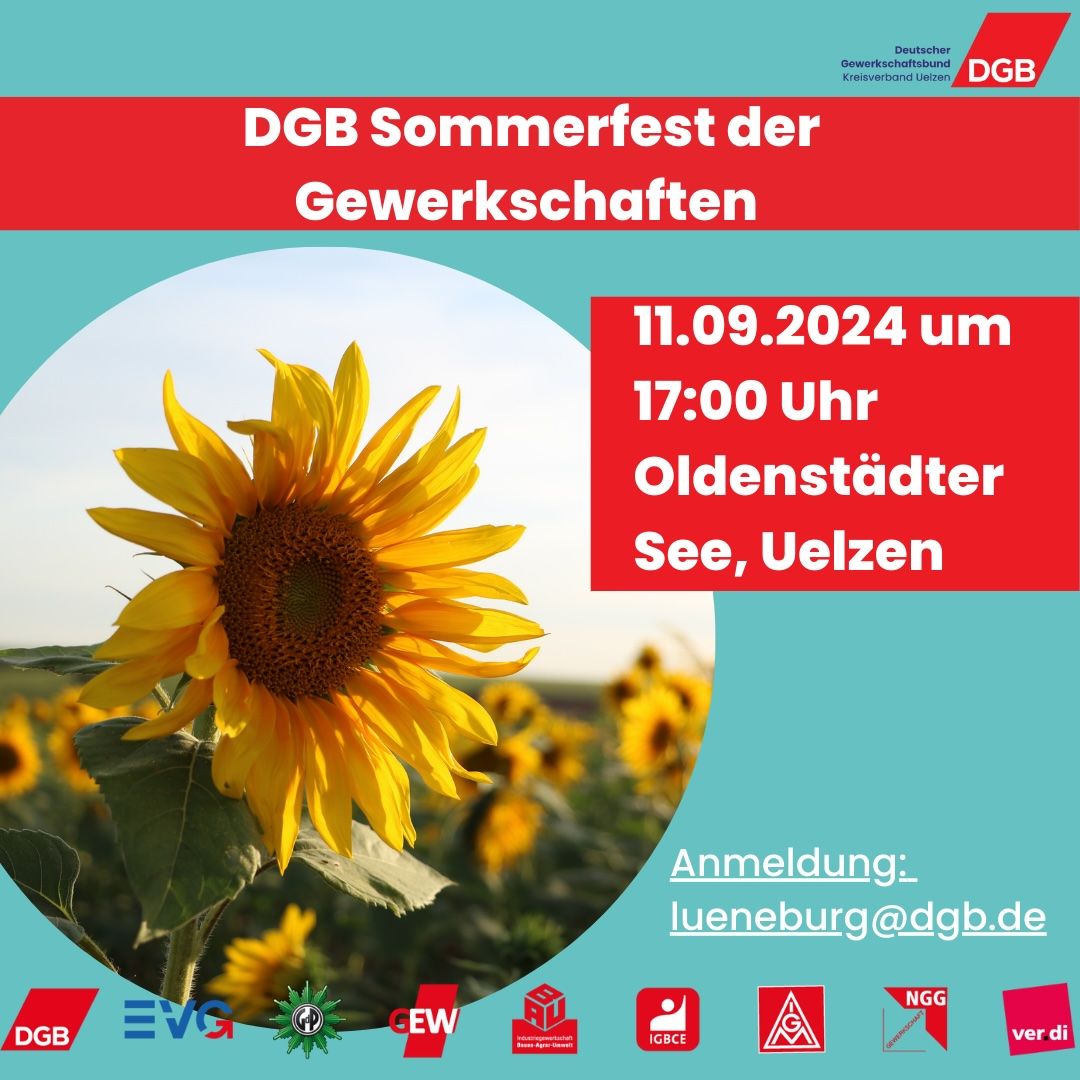 Oldenstadt. Am Mittwoch, den 11. September lädt der DGB Kreisverband Uelzen seine Kolleg*innen der Mitgliedsgewerkschaften zum Grillen ein: "Gemeinsam wollen wir mit unseren Freunden, Kolleg*innen und Mitstreitenden für soziale Gerechtigkeit eine gute Zeit verbringen."